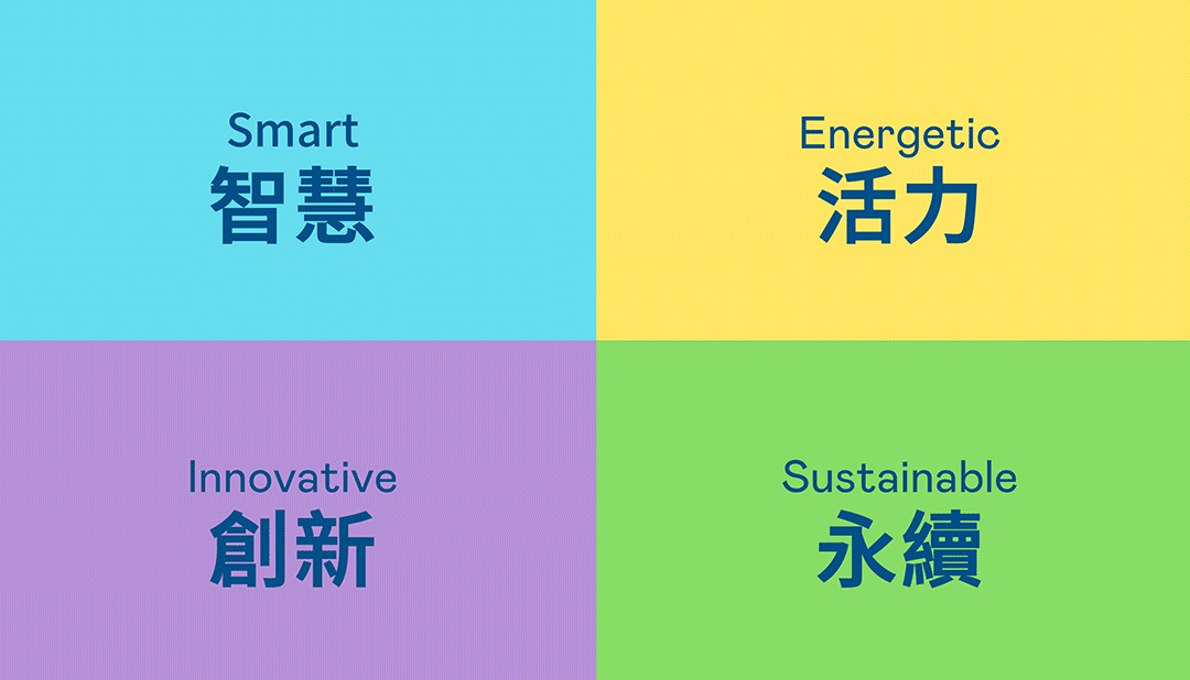 从稳重、信赖的佰富彩蓝开创新色彩,注入象征智慧蓝、活力黄、创新紫、永续绿的品牌色及动态多变的几何图形,呼应不设限的「Possibilities」精神,代表多元的专业技术及领域,在碰撞中相互触动、融合、延伸,持续激荡出更多新的可能性。